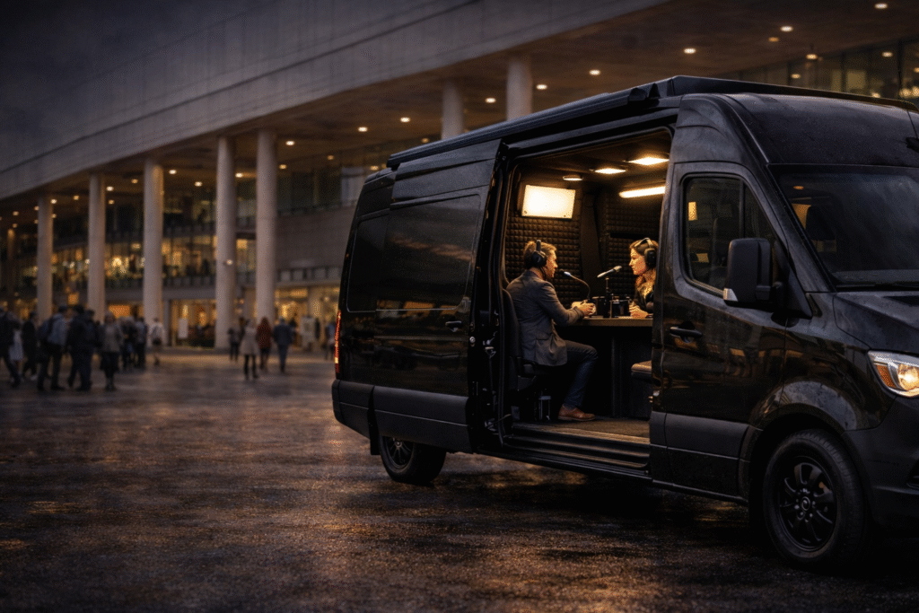 From live events and brand activations to PR interviews and corporate content, we remove the need for traditional studio setups – bringing a fully equipped studio directly to your location.